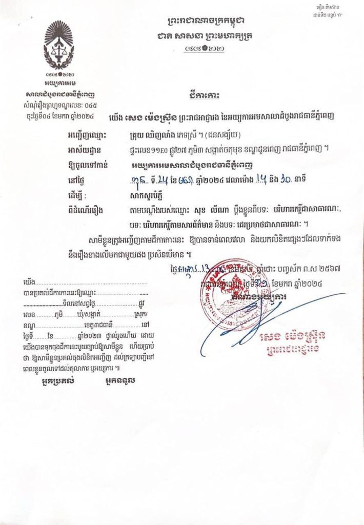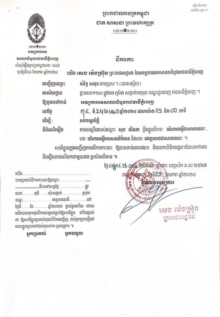 ថ្មីៗកន្លងទៅនេះមានការផ្ទុះភ្ញាក់ផ្អើលយ៉ាងខ្លាំងនៅលើ បណ្ដាញសង្គម ក្នុង ករណីគ្រោះថ្នាក់ចរាចរ បើករថយន្ត Jeep បុក មនុស្ស ស្លា . ប់ ស្រាប់តែម្ដាយ ជន បង្ក ប្ដឹង ប្រពន្ធ ស . ព និង សាច់ញាតិ ជន រង គ្រោះ ទារសំណងសរុប៨០ម៉ឺនដុល្លារអាមេរិក នោះ ស្រាប់តែល្ថាចថ្ងៃទី 23 ខែ មករា ឆ្នាំ 2024 នេះ ម្ដាយរបស់ជនបង្កបានសំរេចចិត្ត ដកពាក្យបណ្ដឹងវិញ ក្នុងសំណុំរឿង បរិហារកេរ្តិ៏ ដែលបានប្ដឹង មកកាន់ក្រុមគ្រួសារ សាច់ញាត្តិ ជនរងគ្រោះកន្លងមក ហើយ បន្ទន់ឥរិយាបទ សុំទោសចំពោះក្រុមគ្រួសារ សាច់ញាត្តិ ជនរងគ្រោះ ដែលបានស្លា/ប់ក្នុងករណីគ្រោះថ្នាក់ចរាចរណ៏ កន្លងទៅនេះ ។ក្រោយពីម្ដាយរបស់ជនបង្កបានសំរេចចិត្ត ដកពាក្យបណ្ដឹងវិញនេះ ក្រុមគ្រួសារ សាច់ញាត្តិ ជនរងគ្រោះ កំពុងនឹងសង្ឃឹម ការចចារ ខាងមុខនេះនឹង ទទួលបាននូវសញ្ញា វិជ្ជមាន នឹង ពន្លឺនៃយុត្តិធម៏ ក្នុងពេលឆាប់ៗ នេះ ។