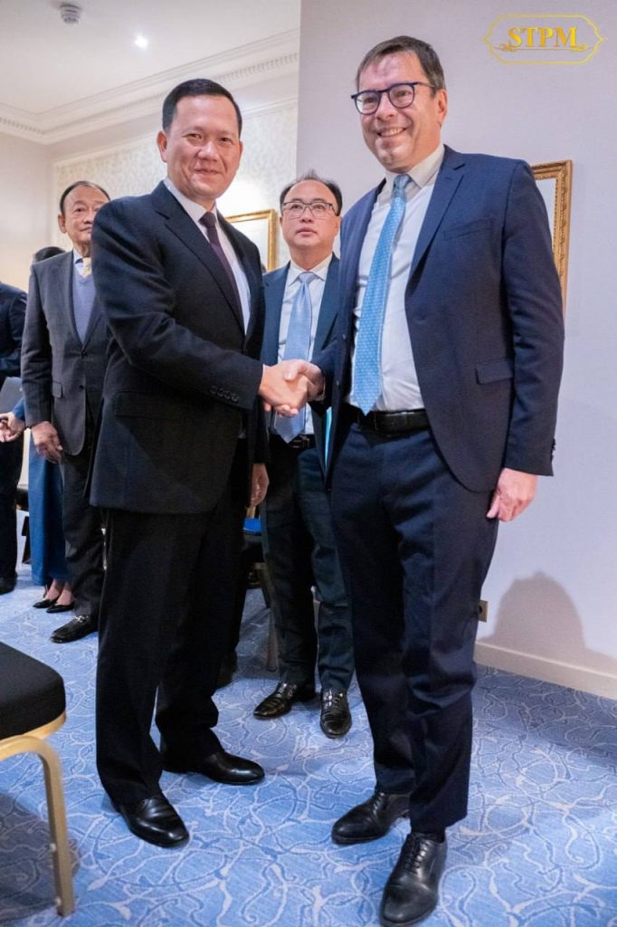 សម្តេចធិបតី ហ៊ុន ម៉ាណែត ជួបជាមួយ លោក Nicolas Notebaert ប្រធានក្រុមហ៊ុន VINCI Airports