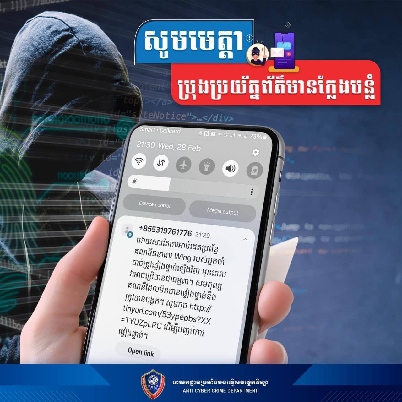សូមប្រុងប្រយ័ត្ន!!! ប្រសិនបើមានសារ (SMS) ការស្នើសុំជាបន្ទាន់នូវព័ត៌មានផ្ទាល់ខ្លួន ដើម្បីចូលទៅកាន់គណនីធនាគារ