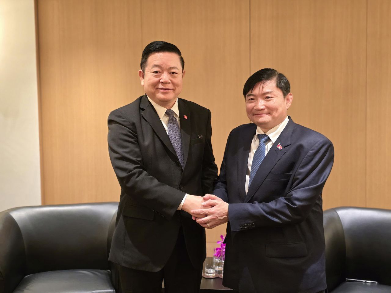 ឯកឧត្តម ហេង សួរ រដ្ឋមន្ត្រីក្រសួងការងារ និងបណ្តុះបណ្តាលវិជ្ជាជីវៈ និង ឯកឧត្តមបណ្ឌិត កៅ គឹមហួន អគ្គលេខាធិការអាស៊ាន បានជួបពិភាក្សាគ្នាជាលក្ខណៈទ្វេភាគី នារសៀលថ្ងៃទី៣០ ខែតុលា ឆ្នាំ២០២៤ នាឱកាសចូលរួមកិច្ចប្រជុំរដ្ឋមន្ត្រីការងារអាស៊ាន លើកទី២៨ និងកិច្ចប្រជុំពាក់ព័ន្ធ នៅក្នុងប្រទេសសិង្ហបុរី។