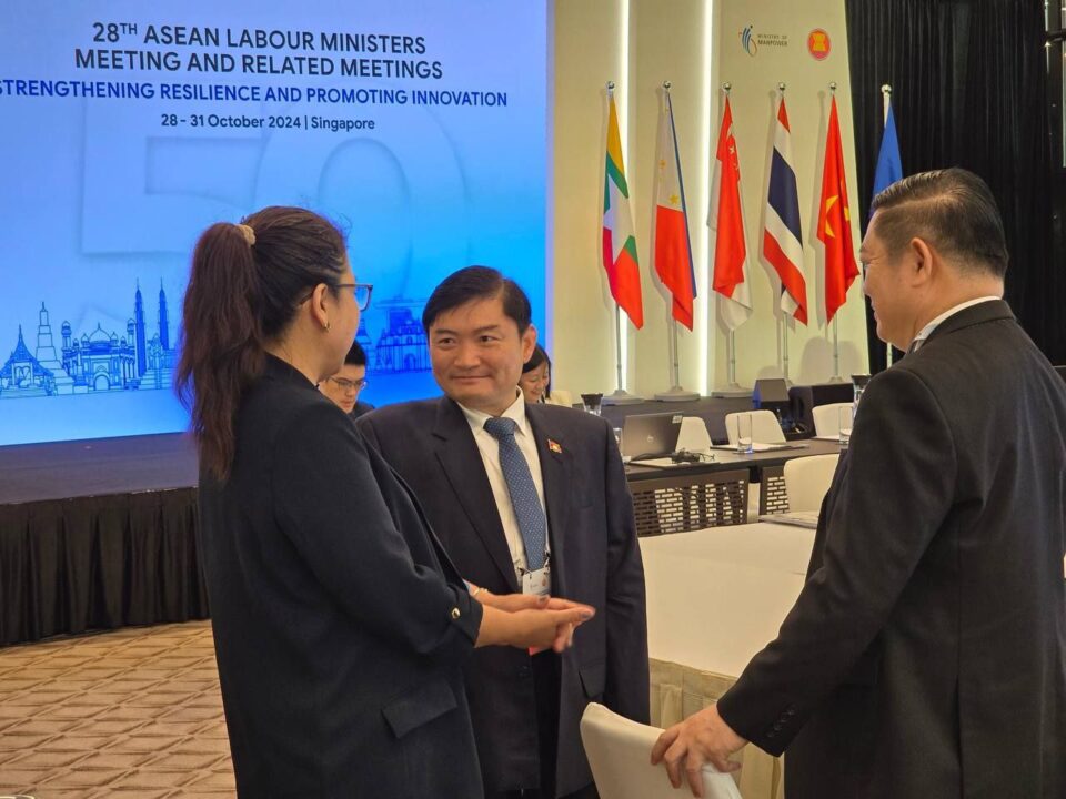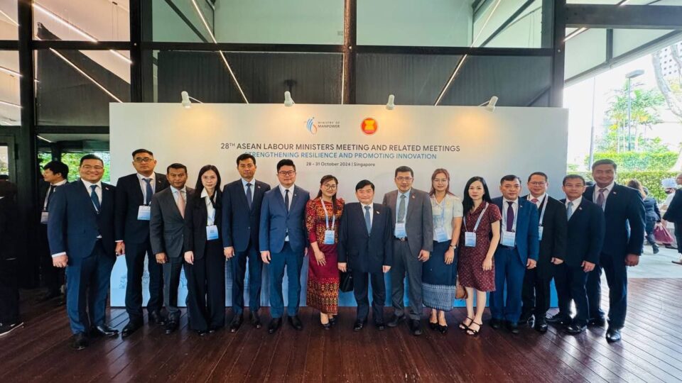 សិង្ហបុរី)៖ ឯកឧត្តម ហេង សួរ រដ្ឋមន្រ្តីក្រសួងការងារ និងបណ្តុះបណ្តាលវិជ្ជាជីវៈ បានដឹកនាំប្រតិភូកម្ពុជាចូលរួមកិច្ចប្រជុំរដ្ឋមន្រ្តីការងារអាស៊ានលើកទី២៨ (28th ASEAN Labour Ministers’ Meeting – ALMM) និងកិច្ចប្រជុំពាក់ព័ន្ធ ក្រោមមូលបទ “ការពង្រឹងភាពធន់ និងការលើកកម្ពស់នវានុវត្តន៍” នាថ្ងៃទី៣០-៣១ ខែតុលា ឆ្នាំ២០២៤ នៅក្នុងប្រទេសសិង្ហបុរី ដែលដឹកនាំដោយរដ្ឋមន្រ្តីក្រសួងហត្ថពលកម្មសិង្ហបុរី និងមានការចូលរួមពីរដ្ឋមន្ត្រី/ប្រធានប្រតិភូក្រសួងការងារនៃរដ្ឋជាសមាជិកអាស៊ាន, រដ្ឋមន្រ្ដីការងារទីម័រឡេស្ដេ ក្នុងឋានៈជាអ្នកសង្កេតការណ៍ និងឯកឧត្តមអគ្គលេខាធិការអាស៊ាន។